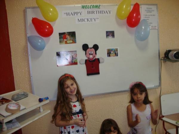 A turma do My First English Adventure 1 da teacher Martt comemorou o aniversário do Mickey no último dia 23/05 com muita música e diversão e um delicioso bolo de chocolate. Happy Birthday, Mickey!!!